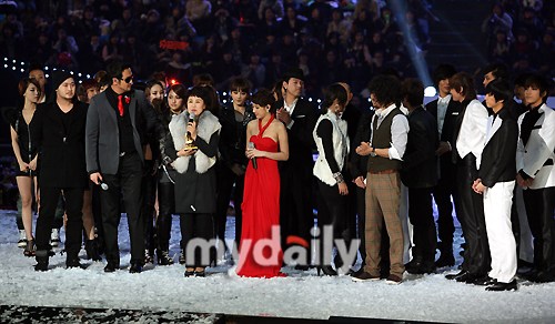 還記得去年MAMA大賞時所有演出藝人一同上台為前輩歌手沈守峰女士祝賀的景況嗎?